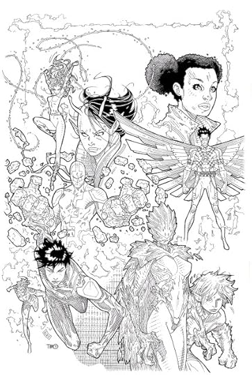 TEEN TITANS #16 comes wrapped in a cover by Jorge Jimenez and Alejandro Sanchez (seen above), but if you're into that whole adult coloring book thing, there's a variant by Timothy Green II (below) that you finish with your own markers, colored pencils or box of Crayolas. In fact, why not take it to your local comic book convention and see if any visiting colorists will add their distinctive touch?