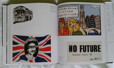 Still, that's sort of the point of the whole book. Ever since the beginning -- since way before the beginning, in fact, punk was a commodity, a look or attitude being used to sell something. Usually records or concert tickets, of course, but even before then it was being used to sell trashy magazines (there's a spread from a 1956 issue of a Canton, Ohio, mag called The Tabloid that hypes "PUNK STREET IN NEW YORK CITY that I'd love to get my hands on), sleazy paperbacks (a 1957 cash-in titled "The Young Punks") and incomprehensible art movements (our old friends the Situationists get plenty of space here).