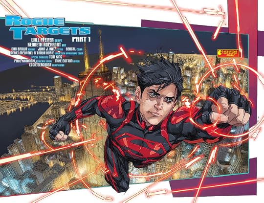The issue in question is TEEN TITANS #9, which is titled "Rogue Targets, Part 1" and follows our heroes as they try to clear the name of their old friend Superboy, who killed a bunch of innocent aliens in the recent TEEN TITANS ANNUAL -- or at least appeared to kill them. TT#9 is brought to you by the regular team -- script by me, art by Kenneth Rocafort, colors by Dan Brown, letters by John J. Hill, associate edits by Paul Kaminski, edits by Mike Cotton and group edits by Eddie Berganza. This issue gets a "special thanks" to my pal Tom King, who wrote the majority of the annual that set all this craziness in motion, and it has two covers. This one, by Bengal...