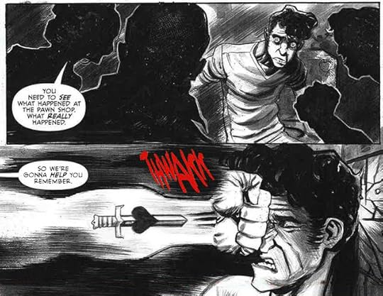 The quarterly anthology uses a sound effect as its focal point (in this case, obviously, SLAM!) and has creators build stories around said effect. My story, "Cellmates," is a twisty little prison thriller about a guy sealed up in solitary confinement who discovers he's far from alone. Art comes courtesy of Scott Hepburn, who I recently worked with on a couple issues of TEEN TITANS, with letters by Steve Wands and editing duties by Rowena Yow. Here are a few panels to whet your appetite: