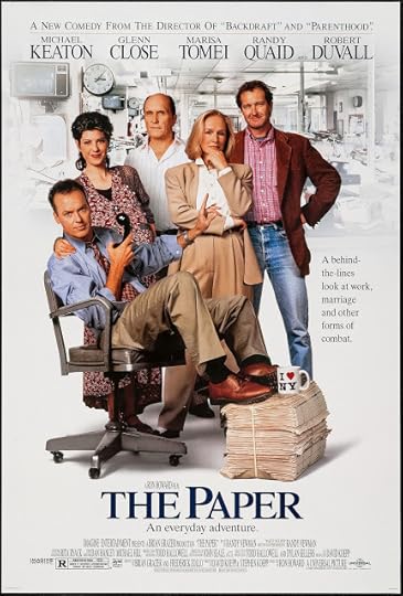 I hadn't seen this movie since it hit theaters way back in 1994, when I was a mere four years into my newspaper career. Now, 21 years later, I've been out of the newspaper business for a few years now, and looking back at this pre-Internet, pre-cell phone, pre-9/11 movie, it's hard to believe things were ever remotely like this, even considering the healthy layer of bullshit Hollywood always spreads over any journalism stories. Taking place during a single day in the life of a fictional Manhattan tabloid, "The Paper" follows several storylines, most of them tying back in some way to a murder that two young African Americans have been (wrongly) accused of. The plot is beyond far-fetched and scattershot (reaching a low point when there's an actual physical fight in the pressroom between Michael Keaton and Glenn Close), but it's consistently entertaining, especially if you've logged any hours in a real newsroom. (As is usually the case with these sort of movies, it's the small moments that tend to ring true.) Plus, director Ron Howard admittedly gathered an amazing cast: Besides Keaton and Close, you've also got Robert Duvall, Marisa Tomei, pre-crazy Randy Quaid, Jason Robards, Jason Alexander, Catherine O'Hara, Spalding Gray, Jack McGee and, of course, Clint Howard. Not as good as Jack Webb's "-30-," but then again, few movies are.