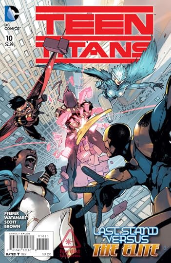 Latest issue of TEEN TITANS hits the stands Wednesday, featuring an all-out battle between the Titans and the Elite, with a small chunk of Chicago getting wiped out in the process. If you like hippos, property destruction and a handful of aliens (including one big red one with a fin on his head), this is the comic for you, friend-o.