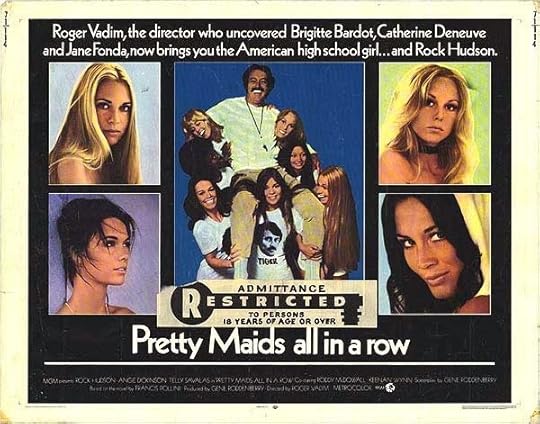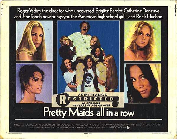Once again, it always amazes me what sort of movie Turner Classics will show late at night. This 1971 oddity features, among other things, Rock Hudson as a football coach/teacher who both sleeps with most of the (female) student body while simultaneously encouraging substitute teacher Angie Dickinson to take the virginity of his nerdish equipment manager (John David Carson, playing a student named, believe it or not "Ponce de Leon Harper). As if that weren't strange enough, when the dead bodies of those girls start turning up, Telly Savalas shows up to investigate, playing a very Kojak-like cop about two years before "Kojak" went on the air. He's assisted by James "Scotty" Doohan, which makes sense when you realize that "Star Trek" creator Gene Roddenberry is the guy who wrote this sexed-up serial killer comedy, and Roger Vadim directs the whole thing with an endlessly leering eye to all the young high school girls. I can honestly say I've never seen anything quite like it. Oh, and spoiler alert, the killer gets away with it in the end, and the most down-to-earth character in the movie seems all set to follow in his footsteps. Enjoy!