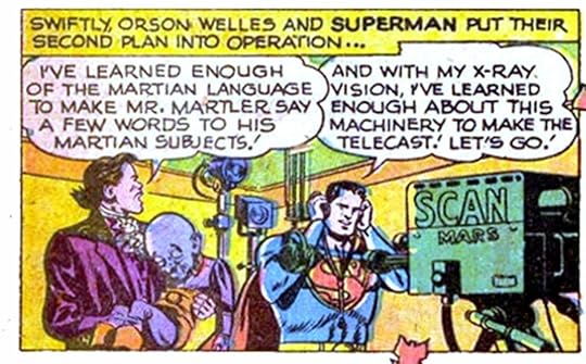 Orson Welles and Superman team up to use an unconscious Martian as a ventriloquist dummy to convince Mars not to attack Earth. Really.