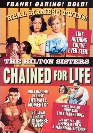 You may remember the Hilton sisters from Tod Browning's classic film 1932 "Freaks," in which they played conjoined twins, which is exactly what they were in real life. This low-budget quickie was made two decades later, and Daisy and Violet look every day older of those 20 years. I imagine earning a living on the carnival circuit was a tough life, and I'm sure the sisters were hoping this movie would earn them a few bucks. Trouble is, it's both too convoluted and too simple to be entertaining, and it never comes close to approaching the twisted brilliance of Browning's film. The sisters play, essentially, themselves, conjoined twins with a mediocre nightclub act. When a sleazy lothariot plots to marry one of them, things go horribl wrong. The whole movie is told through an awkward double flashback structure, with the judge flashing back to the trial, which then flashes back to the events of the movie. It's deadly dull and incredibly cheap (with a sad, late-career appear by Warner Bros. stalwart Allen Jenkins), but there is one memorable sequence where one of the sisters has a dream where she's separated from her sibling and dances gracefully in a field. It's obvious a double is being used (how else could they shoot the scene?) but as crude as it is, it has a real emotional punch and, in its few seconds, addresses the issues of the film more powerfully than the rest of the crude melodrama.