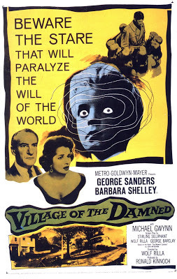 I know this is regarded as a classic of the genre, one of the first "creepy kid" movies ever made and a paragon of intelligent British science fiction. For years, I've had the double-feature DVD containing this and its sequel, "Children of the Damned" (another freebie -- oh, how I miss that column). But in all that time, I'd never watched it. This Halloween month, I decided to fill in that particular gap in my movie-watching knowledge. And ... well, you can see where this is going, can't you? I found myself unimpressed. The kids are more goofy than scary, the idea that everyone just sort of accepts a village-wide epidemic of pregnancies is never addressed in any believable way, and though George Sanders is always fun to watch (and listen to -- that voice!), he makes a pretty dull hero, muttering about his super-intelligent son until he finally decides to do something to prevent a global takeover by weird-eyed kids in blonde wigs. To tell the truth, my favorite part of the movie was the very beginning, when everyone in the village passes out and the authorities are left to stand at the edge of town, not daring to cross over a painted line. Now that was creepy.