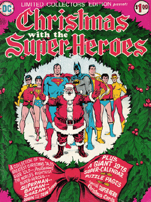 Published in 1975, when I was eight years old, it was one of those giant DC reprint collections obviously released for the Christmas season. I can't remember if my mom and dad gave it to me on Christmas or bought it a few days earlier to keep me occupied, but I do know I read it over and over (and over) and, as a matter of fact, still have it. And Nick Cardy drew that cheery cover.