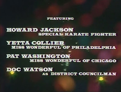 The main title of "Disco Godfather," which even on my large hi-def TV, was a little hard to read. I'm guessing it was more legible on a giant movie screen in the late 1970s. Hell, I'm guessing it was downright glorious.