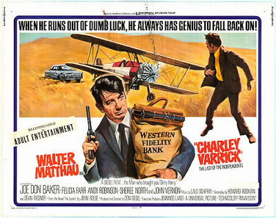 How great was Walter Matthau? I first encountered him as a kid in "The Bad News Bears," but he could play everything, from comedy to drama to thrillers. He's part of some of my very favorite movies, like "A Face in the Crowd" and "The Taking of Pelham 1-2-3," and as I plow through the twisted back alleys of Hollywood history, he keeps showing up in the most unexpected places. In this 1973 crime caper, he plays the title role, a very clever career criminal trying to save himself from mob retribution when he accidentally steals their money from a small town bank. Andrew Robinson and John Vernon provide strong support, but the most surprisingly element in "Charley Varrick" is Joe Don Baker, playing a hired gun. Looking almost exactly like a young Elvis Presley, he brings a real sense of cool menace to his role, upping the suspense stakes considerably.