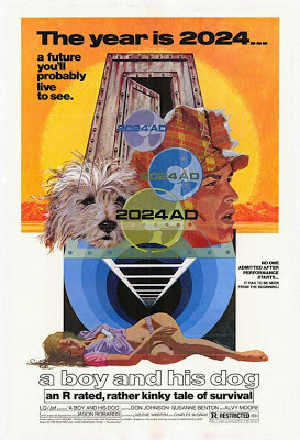 I don't think I've watched this post-apocalyptic oddity since my long-ago college days, but TCM (them again!) ran it a few nights ago. I'd forgotten just how well it works -- it's simple, unsubtle and definitely low-budget, but damn, it really delivers the good. Don Johnson, impossibly young, plays Vic, a wanderer of the post-World War IV wasteland, looking for canned food to eat and women (willing or unwilling) to "use." His loyal companion is Blood, a hyper-intelligent dog who communicates with Vic via telepathy. (Blood is played by Tiger from "The Brady Bunch" and voiced by the late, great Tim McIntire, who played Alan Freed in the 1978 obscurity "American Hot Wax.") I remembered what everyone remembers: the twisted joke of an ending (and it's a good joke), but I'd completely forgotten about the outdoor theater Vic and Blood visit late one night. The films, scratchy and run through an ailing projector, are creepy combinations of violence and sexploitation, obviously made on the cheap. I don't know if director L.Q. Jones filmed them, fobbed them off on a second unit or cobbled them together from actual black-and-white roughies, but they really seem like the last movies ever made, cranked out for pennies to appeal to a civilization that didn't have much time left. It's that imagination -- and attention to detail -- that makes "A Boy and His Dog" worth watching, even if you know how it's going to end.