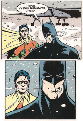 Batman gives Robin a little advice regarding Wonder Woman and her costume.