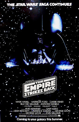 Well, Allie wanted to watch it, and who was I to say no? I chose the above image because that's the poster that hung over my bed in the summer of 1977. Not exactly Carrie Fisher and Mark Hamill, but who cares? Unfortunately, the version Allie and I watched last month was not the version I saw back in '77, and I had to endure all that annoying CGI bric-a-brac that Lucas insisted on adding to make the movie "special." (If you want to see something truly awful, watch the much-hyped scene with Han and Jabba.) Still, any version of "Star Wars" has its moments, namely that first shot of the Star Destroyer flying overhead. (Sad but true fact: I divide my life between the moment before I saw that shot and after.) And the ending, with Luke making the Death Star run, as I've said before, always gets me on the edge of my seat. It's a master class in suspenseful editing, with Luke still flying toward the target after the Death Star has, technically speaking, already pulled the trigger.