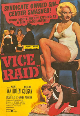 And the Mamie Van Doren festival continues, thanks to the fine folks at TCM. This one isn't nearly as much fun as "The Beat Generation." It's a stripped-down tale of police corruption and vice surrounding a gangster empire built on a rather chaste cheesecake photo/escort scheme. Mamie does strip down to that bathing suit for about five minutes, so the poster isn't technically lying.