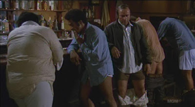 Later in that same scene, after Truck wins the fight, he orders the other guys in the bar to drop their pants and leave them down ... and they DO.