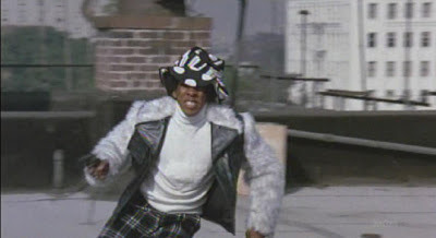 Not to be outdone by Dick Miller or Nichelle Nichols, Scatman Crothers shows up as an ex-pimp and wears argyle socks, pink pants, a satin shirt, a gold chain and the worst toupee in movie history.