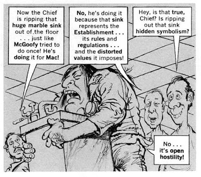 Actually, it wasn't until this month I finally did see "Marathon Man" (look for a write-up in the next monthly movie blogpost), but I remembered some of the scenes from "Marathon Mess," which I must've last read at least 30 years ago. And even now, after seeing "Apocalypse Now" dozens of times, my head still fills in the spoof title, "A Crock O' Blip Now," and remember how the "Blip" in the title cleverly blocks out the partially visible word "Shit" on Mort Drucker's double-splash panel. Pretty edgy for the normally profanity-avoiding MADmen.