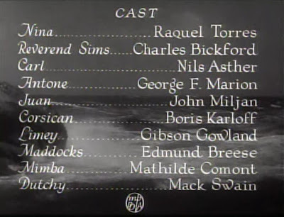 That's right, sixth-billed and playing "Corsican" (which is probably his nationality -- I don't think the character is ever named) is none other than Boris Karloff himself, one year before he became so famous that he was either billed by his last name alone or, even more enigmatically, as "?" (Don't believe me? Click here.) Truth be told, Karloff, like most of the cast, doesn't have a whole lot to do, but he does manage to scowl menacingly when the occasion calls for it...