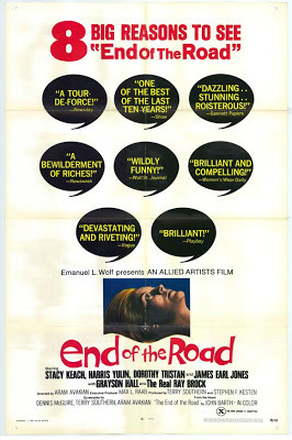 The undisputed oddball champ of the month, "End of the Road" is the sort of movie that could only have been made at the tail end of the 1960s. Stacy Keach stars as a catatonic college grad who is taken to "The Farm," an out-of-the-way asylum presided over by Dr. D, played by James Earl Jones in a way that "over the top" barely begins to hint at. Eventually, Keach is released and sent to teach at an equally strange college, where he becomes uncomfortably close to a professor/Boy Scout leader and his browbeaten wife. Things get even stranger from that point until the whole movie ends in a nerve-wracking abortion sequence that earned it an X rating. Not for all tastes, but undeniably powerful and absolutely one of a kind. "End of the Road" had slipped into obscurity (and legend) until the folks at Warner Bros., bless their twisted little hearts, released it this year on DVD. The retrospective feature (with plenty of interviews) is worth watching, too.