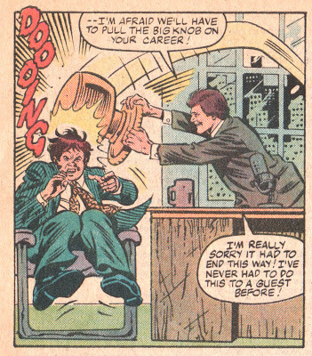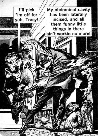 While Little Orphan Annie, Dick Tracy, Tarzan and Cheetah look on, Snuffy Smith kills Rex Morgan, MD, with a double-barreled shotgun.