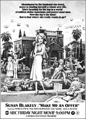 Here's another TV Guide ad from Will Elder, this time from the 1980 TV movie "Make Me an Offer." If you're looking for a connection to Will's glory days at Mad, I suppose you could say that the movie co-stars