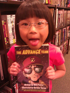 Is it a couple of copies of "The Advance Team"? Why yes it is. Let's move one of them up to a higher shelf so the cover can be seen by all who pass by ...