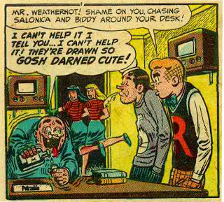 I've blogged before about "Starchie!," the classic Kurtzman/Elder takedown of America's favorite teenager that originally appeared in Mad #12 (June 1954). A later Kurtzman/Elder Archie satire, the notorious "Goodman Goes Playboy," is more notorious, and Archie's lawyers took the boys to court over so-called "copyright infringement," and as a result, the story could never be printed again.