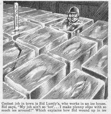 Here, in honor of winter continuing to make up for lost time here in northern Illinois, are a couple more Will Elder-drawn panels from the "Hot Weather Photos" feature from way back in 1954's Mad 29.