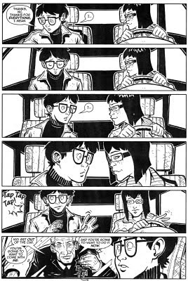As it turns out, that was a landmark evening, kicking off the long and complicated relationship between Maggie and Ray. But all that mattered to me, back in 1987, back in college, back reading that original issue off the stand, was that two of my worlds -- comics and music -- were finally colliding. I'll never forget how surprised and happy that panel made me. Still does, in fact, even after all these years.