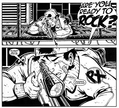 In honor of the announcement of this year's nominees to the Rock 'n' Roll Hall of Fame in Cleveland, I thought I'd share a moment from my upcoming graphic novel "The Advance Team" that combines (a) rock 'n' roll and (b) the city of Cleveland.