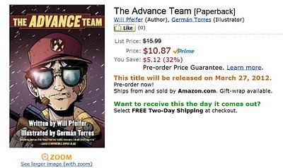 ... it's only for pre-order, of course, but if you'd like a copy of that graphic novel "The Advance Team" you've been hearing so much about, get out your credit card and click here.