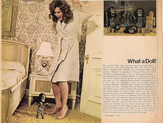 The only story in this trilogy that anyone talks about is the last one, and that’s for good reason: The first story (shy teacher Karen Black is really a witch) and the second story (two women played by Karen Black are really one woman) are dull, predictable and barely worth watching. But that third story – Karen Black is attacked by an African doll – is great, a genuinely scary, fun, tense exercise in nasty violence and well-staged terror. No wonder people still talk about that segment more than 40 years after the TV movie originally aired. By all means, check it out – and don’t feel bad about skipping the first two sections.