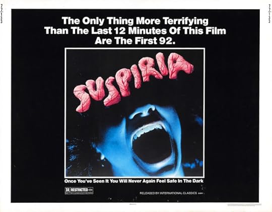 I’ve seen it before, and I watched it again mostly because (a) there’s that new remake out and (b) I never got around to watching my sweet, sweet Synapse Films Blu-ray. Boy, am I glad I put this one in the player. The gorgeous picture and booming soundtrack of the Blu-ray reminded me what a mind-blowing cinematic experience “Suspiria” is, and the fact that it barely has a plot is, as they used to say, a feature and not a bug. Director Dario Argento aims directly at the center of your brain, bypassing logic and character development and grabbing you with visuals and a legendary score (courtesy of Goblin). It’s impossible to pick a favorite scene – Jessica Harper’s arrival in German is breathtaking even though nothing much happens, and the elaborate first murder is justifiably praised for its colors and staging – but this time around, I really admired the long, tense chase through the school that suddenly ends in a room full of razor wire. Does it make even the slightest bit of sense? Of course not. Is it incredible? What do you think? By the way, that poster doesn't lie: The ending of the movie is slightly less jaw-dropping than the rest of the film ... but only slightly.Up next: Cronenberg! Polanski! Some classic noir! And two really disappointing horror movies!