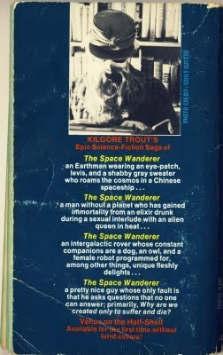 Farmer did a lot of that sort of thing, writing short pastiches as if he were (a) another author or (b) a fictional character who happened to be a writer. Probably his most elaborate gag along these lines was "Venus on the Half Shell," a short novel supposedly written by none other than Kilgore Trout, who appears in "Breakfast of Champions," "Slaughterhouse Five" and other novels by Kurt Vonnegut. "Venus on the Half Shell" was a title mentioned in Vonnegut's book "God Bless You, Mister Rosewater," but Farmer created an entire narrative out of those five words and somehow convinced Dell to print the thing (after it ran as a two-parter in a magazine). Vonnegut was apparently not amused, especially because everyone seemed to assume that he'd written it.It was reprinted with Farmer's name prominently displayed, but the edition you really want (assuming you like these sort of pop culture jokes -- obviously I do) is the original paperback with "Kilgore Trout" listed as the only author, complete with a photo of him (Farmer in a beard and hat) on the back cover.