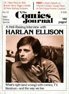 I've always thought Ellison's writing holds a special appeal for young men stumbling through adolescence with a little bit of frustration, a little bit of suspicion and a little bit of smarts -- or at least enough smarts to realize the world isn't what everyone's been telling you it is. Ellison obviously loves to write -- his stories are full of wordy, elaborate and imaginative names and whirlwind flights of fancy. This is no stripped-down prose trying to be grown-up, it's like a teen who just discovered he could make up his own stories was turned loose on a typewrite. Maybe that's why I liked Ellison so much as an adolescent -- he wrote the way I would have written if I could've written that way. Loud, fast-paced, smart-assed, profane and full of big words and bigger attitude. And, more than anything, self-obsessed. When Ellison wasn't crafting his own autobiographical books ("Memos from Purgatory") or writing fiction that obviously starred some version of him (" 'Repent, Harlequin,' Said the Ticktockman"), he was penning long intros to his short story collections (and I mean intros to each story, not just for the whole book) or writing criticism and essays that wound up being reprinted -- where else? -- in the pages of The Comics Jousnal. It was heady stuff compared to most of the other fiction (and nonfiction, for that matter) that I was reading.
