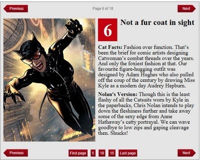 The movie geeks over at Total Film offered up "18 Comic Book Inspirations" that they're advising writer/director Christopher Nolan to consider for Catwoman in his upcoming movie, "The Dark Night Rises."