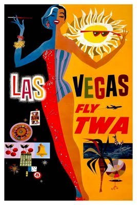 Via Boing Boing, here's a vintage 1965 TWA travel poster celebrating all things grand and glorious about Las Vegas in its heyday.