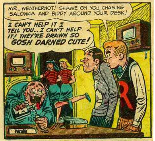 STARCHIE!I posted a panel of this on my Facebook page in honor of Will Elder's birthday (Sept. 22), and I was reminded once again just how goddamn brilliant it is. When I first saw this as a kid in the pages of a Mad Super-Special reprint back in the 1970s, I was genuinely unnerved by how brutal the satire was and how Will Elder twisted the friendly, open lines of the Archie house style into something much deeper and darker. In the years since then, I've read it hundreds of times and have come to the conclusion that it's quite possibly the greatest single comic book story ever published. There. I said it.