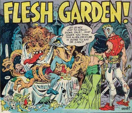 FLESH GARDEN!I'd argue that the great Wally Wood did his greatest work in the pages of Mad, whether in wild (Marie Severin-provided) color in the comic book version or in beautiful black-and-white in the early days of the magazine. Of all his work in Mad, though, I'd pick this crazy, violent take on Alex Raymond's space opera as his all-time best. Every panel is packed, and every line is gorgeously rendered.