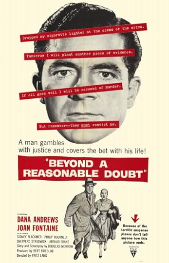 Having spent more than two decades slogging it out in a newsroom, I'm a sucker for newspaper movies, especially vintage black-and-white ones set in vintage hard-boiled newsrooms. One of my favorites is "When the City Sleeps," a Fritz Lang-directed film starring Dana Andrews. So, naturally, I figured this one, from the same year and with the same star and director, would be right up my alley. And, well .... (do you sense a theme developing in this blog post?) The premise is compelling, if a bit far-fetched: A reporter/novelist (Andrews) conspires with his publisher and future father-in-law (Sidney Blackmer) to frame himself for a murder using only circumstantial evidence, then reveal the truth after the conviction and thus, deal a fatal blow to the concept of capital punishment. Naturally, things do not go as planned, and even more naturally, there's a third act twist that, frankly, I should've seen coming. It's not nearly as entertaining as "When the City Sleeps," I'm sad to say, and Dana Andrews sleepwalks through what, on paper at least, is a pretty meaty role. Still, at least you get Blackmer (best known as Roman Castevet in "Rosemary's Baby") as the publisher and Barbara Nichols (from "Sweet Smell of Success") as a stripper. So it's not a total loss. And that's a nice poster, right?