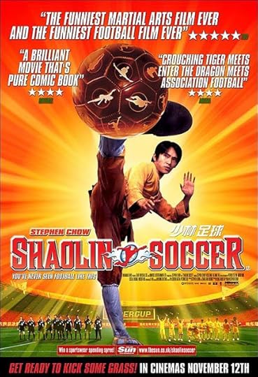 Mom was out of the house, so for a daddy-daughter night, Allie and I decided to watch this Stephen Chow action comedy, being that we're both big fans of his 2004 movie "Kung Fu Hustle." "Shaolin Soccer," which came first, isn't quite on that level, but it's an entertaining way to spend 113 or so minutes. Chow plays a Shaolin student trying to teach his kung fu who runs into a disgraced soccer player looking for one last shot at redemption. Eventually, Chow and the player gather (what else?) a ragtag bunch of bums, each with a hidden super-power that comes in suspiciously handy on the soccer field. It's all played very, very broadly, even compared with the cartoonish concepts of "Kung Fu Hustle" (for one thing, the evil team is actually named "Team Evil"), but that only adds to the fun, and though you can predict the ending a mile away, it's still a blast to see the crazy ways the movie gets there. Allie's favorite part? When Chow's chubby brother can't resist food, to the point where he eats broken eggs (a) off someone's foot and (b) out of someone's mouth. I told you it was broad comedy.