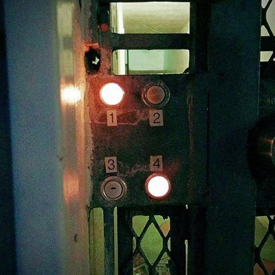 I shot this last night while walking a few blocks to the local movie theater to catch a summer blockbuster. Even at 9pm, the night wasn’t dark enough for the illuminated doorbell buttons to be visible from much of a distance. They’re neither bright nor commonplace enough to provide a Christmas-tree effect. Later, after the movie, on the walk home, even though it was quite dark, they still really weren’t visible from a distance. Their light is just strong enough for when you’re near a given doorway. This one, clearly getting on in years, seems to suggest a non-existent functionality: that the apartment dwellers can turn on and off the light to signal whether or not they are welcoming visitors.