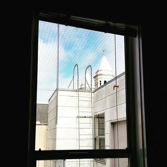 This being San Francisco, when rent on my #noiseoffice went up over 50%, I figured that was part of the price of being in the city. But then friends and colleagues started directing me toward more cost-efficient options, and in the end much of what my current office’s rent included (shared conference room, waiting area, bathroom with shower) wasn’t all that necessary for me. Surprisingly quickly, I lucked out and found a place that was 40% less than my current rent (do the math regarding how much less that is than my projected rent). Anyhow, the new spot is also about 50% larger than my previous office, though lacking in some of the amenities (no street view, fewer windows, carpet instead of wood floors). For local flavor’s sake, my new office is in between that of a massage therapist and a crematorium. They don’t have an oven in the crematorium office — they just hold meetings there. This shot is the view out the one window in my office. The building neighbors a local church, whose bells ring clearly at 5pm, and likely other times of the day — when exactly I’ll find out after I move in.