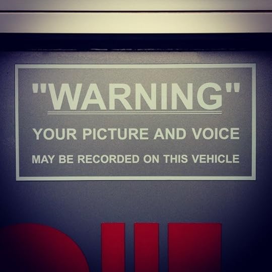 The public bus wording suggests still images in contrast with constant voice surveillance.