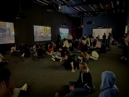 The other was that the audience at SFMOMA came, at the end, to collectively focus on that outside-view screen, and in turn came to resemble the audience within the work. By watching together, we had, in effect, turned the gallery into a porch. When I noticed this, I stepped back into the furthest corner, took a photo of what I was witnessing, and recognized that Kjartansson has engineered a scenario in which is audience became a tableau just like the one he had filmed.