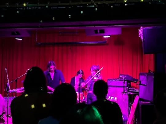 Sachi’s Mirror, a local band, is either violinist/vocalist Shaina Pan’s project with supporting musicians, or the name of the trio, but in either case was thoroughly engaging. She routes her electric violin through a variety of guitar pedals, and the drummer did a great job of playing in a manner that sounded trip-hop-ish, the way it resembled precisely sampled beats, while the guitar player provided texture and patterning. Pan’s voice had a shoegaze-y quality to it, and the songs were well-constructed. You could really hear what they are working toward.