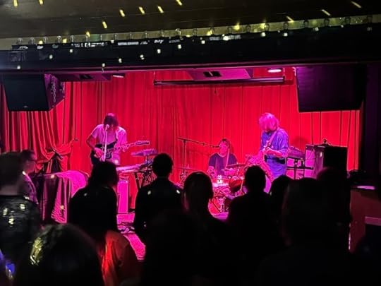 There were three other acts on the bill that night, one earlier and two later, and of them I only also saw Angoisse Magazine, a quartet (though often described as a trio, so perhaps they expanded for the tour). If you’re familiar with pop-psychedelic movies of the 1960s and early 1970s, then you have a sense of a certain type of louche score (essentially, stylish background music) and how those films might also feature a rock’n’roll band at some key point (like the Yardbirds pop up in Michelangelo Antonioni’s Blowup). Angoisse Magazine is as if the score and such a band were one and the same, and they segued charmingly back and forth between the two modes.