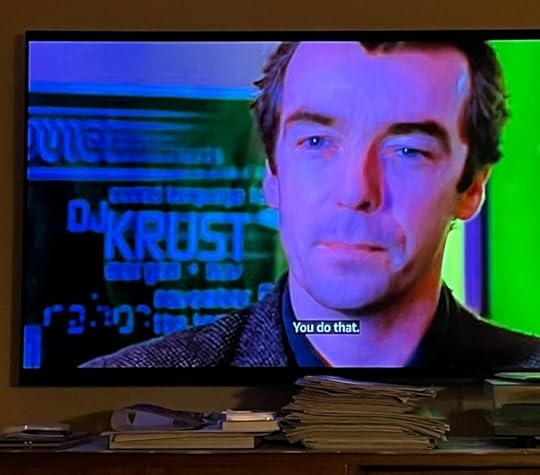 ▰ DJ Krust poster in the first (2000) episode of the Rebus TV series, as the detective interviews a club owner backstage