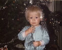 When he was 18 months old, his cousins decorated him as well as our tree, while I held a new Christmas baby in my arms. Special memories, so long ago....