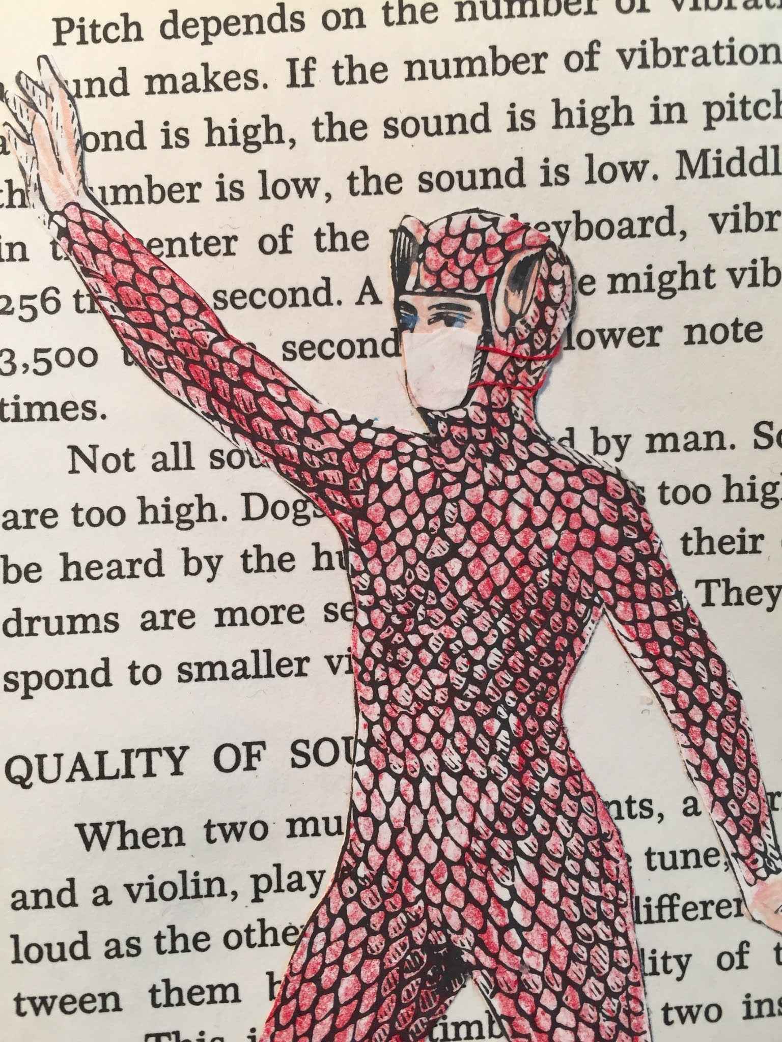 In her piece, below, Jill combines drawing, painting and collage to create Doorways Into the Past, a piece that contemplates the joys and perils of raising a teenager during the pandemic. It's both fraught and wistful at the same time, and certainly something any parent can relate to.