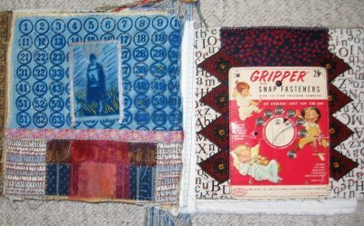 One of Gayle's TagTalk greeting cards , made from recycled clothing tags.
